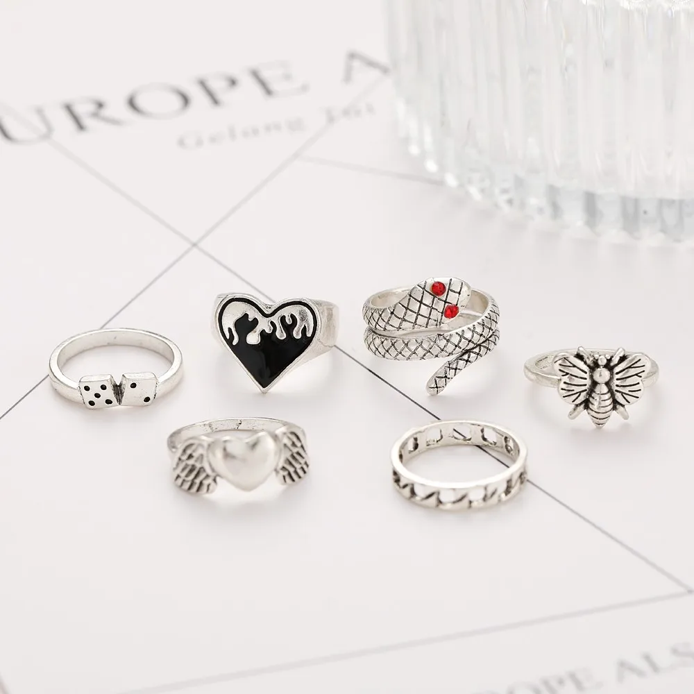 Кольцо женское в готическом стиле, серебристого цвета, 6 шт., 2021 г.