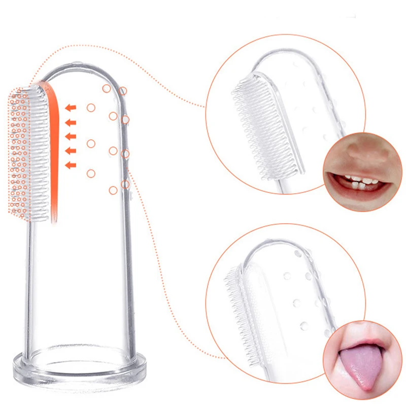 Детская зубная щетка на палец, Детская прозрачная Массажная мягкая силиконовая резиновая Чистящая Щетка для младенцев, зубная щетка для ухода за младенцами