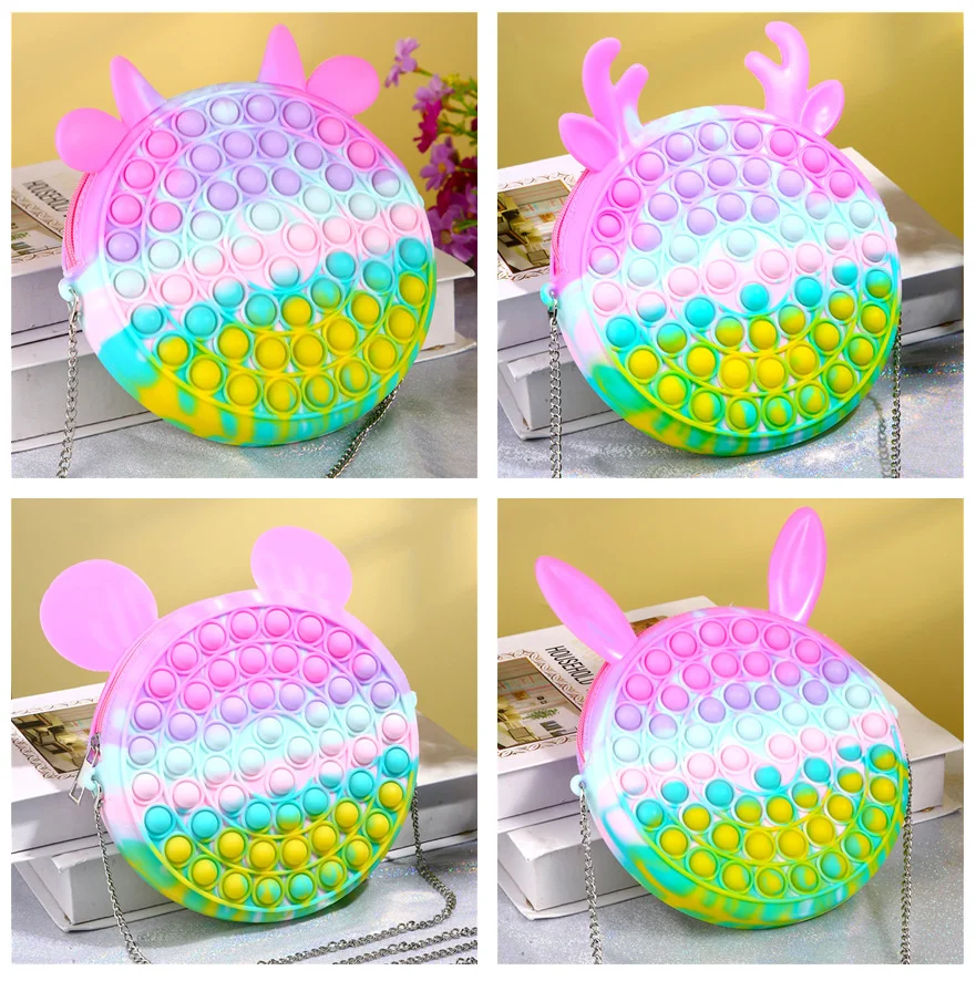 Симпатичные игрушки-антистресс в сумке, антистрессовые радужные пузырьки, симпатичная диммер, антистрессовая игрушка для детей, игрушка для сенсорных игр, рюкзак