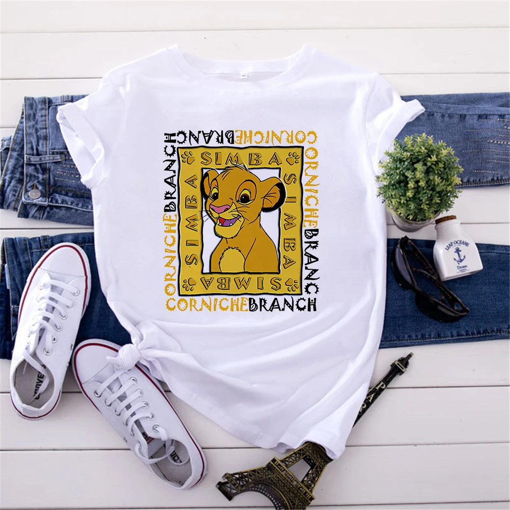 Женская футболка с принтом Hakuna Matata Simba, белая футболка с му...