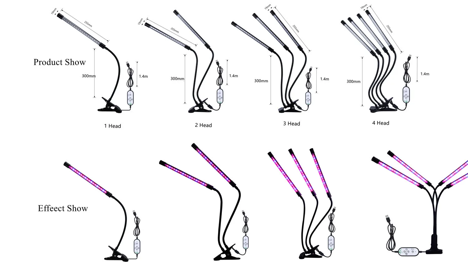 Материал: алюминий и ПВХМощность: 1 головка: 9 Вт/2 головка: 18 Вт/3 головка: 27 Вт/4 головка: 36 ВтВходное напряжение: 5 В