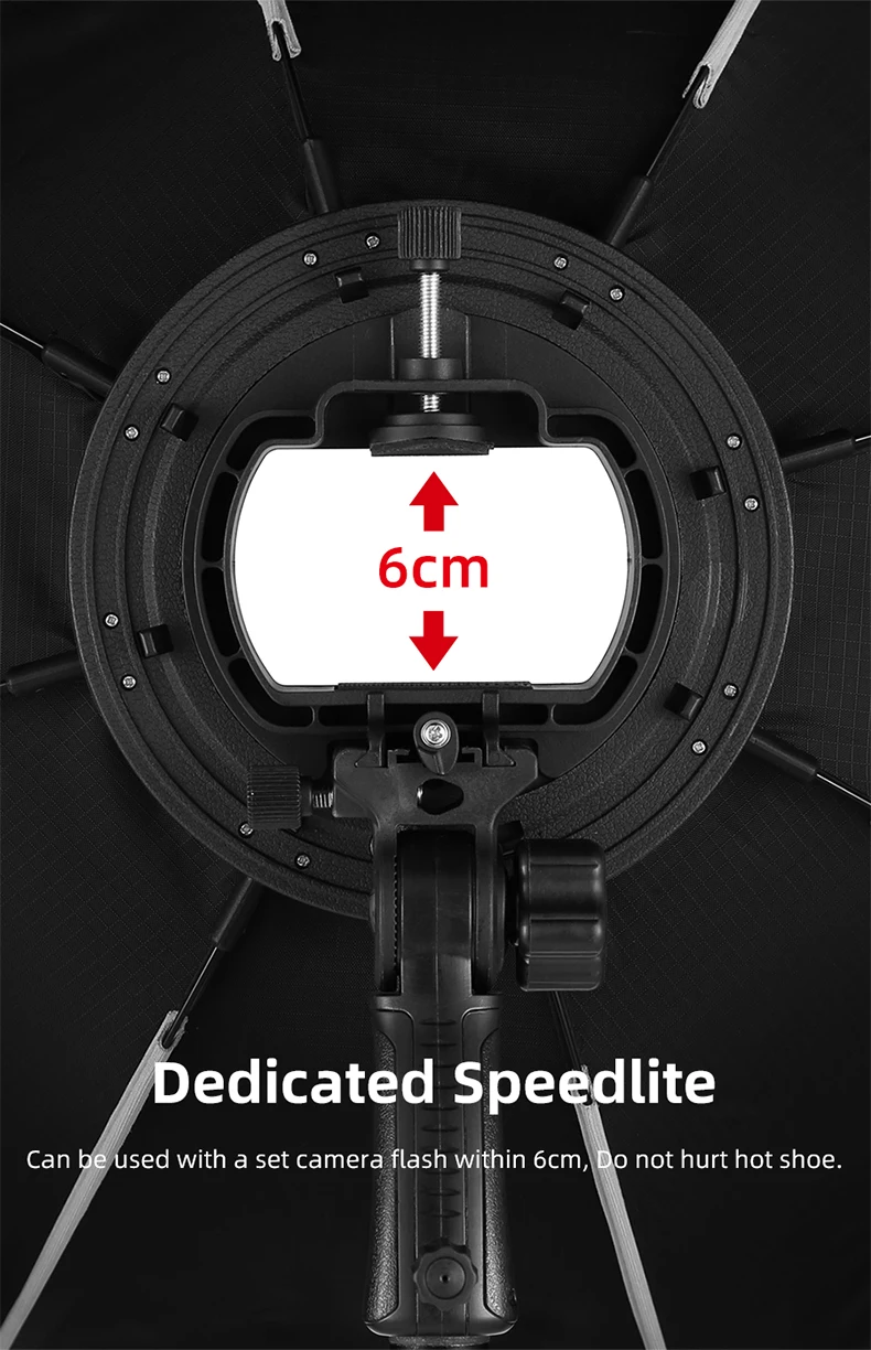 1. Внутри с отражающим серебром и поставляется с передним полупрозрачным диффузором, отлично подходит для speedlite, monolight, strobe или slave.
