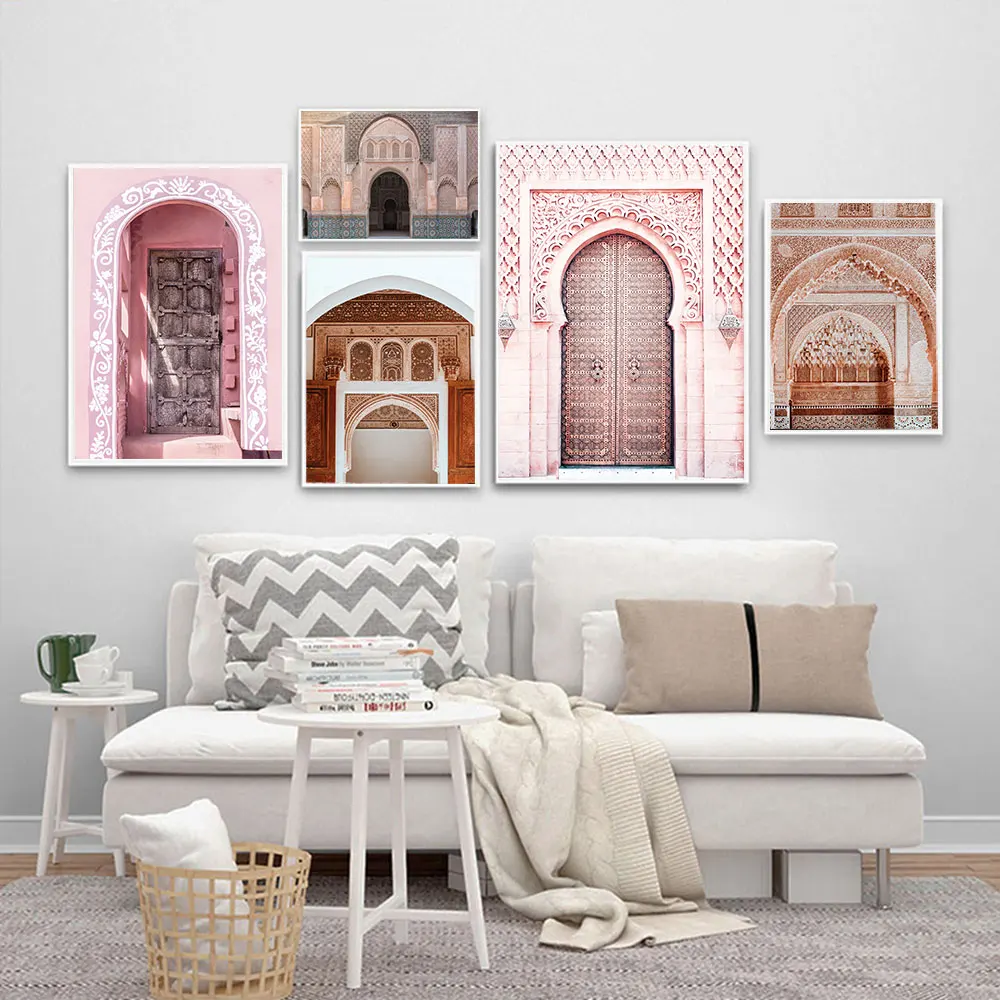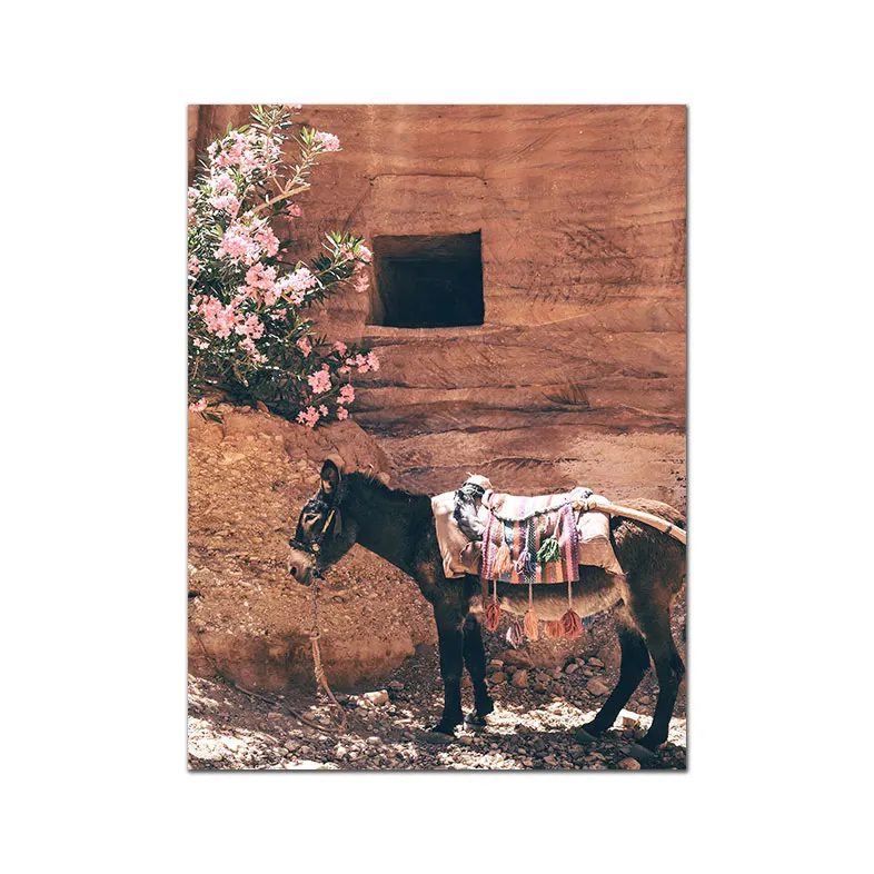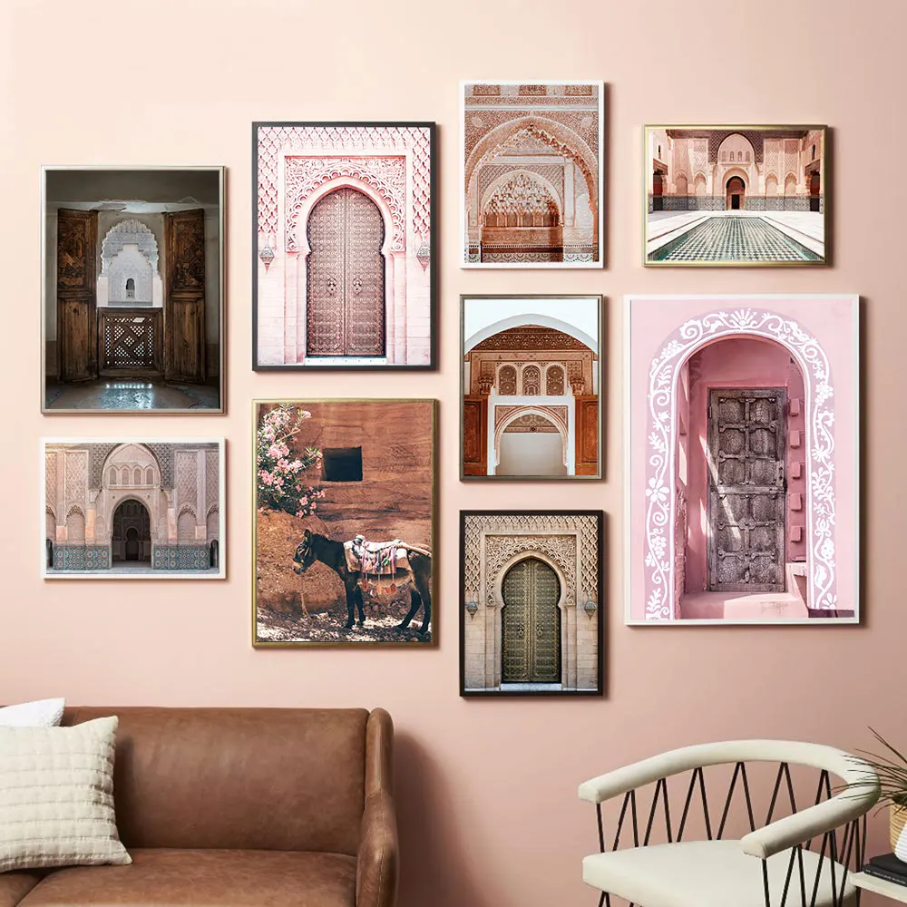 Настенный постер в скандинавском стиле, Современная Картина на холсте с изображением двери, красочного здания, лошади, в марокканском стиле, домашний декор