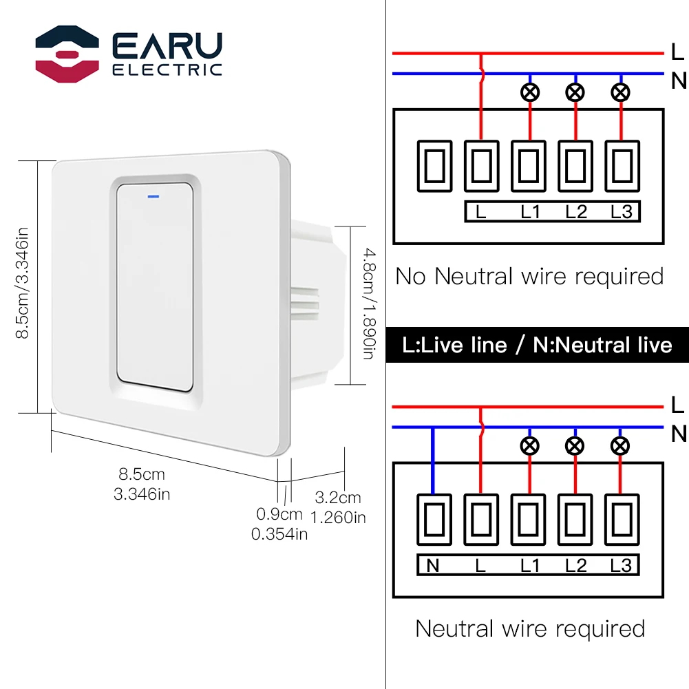 Без нейтральный требуется Вход Напряжение: 200-240VAC 50/60HzМаксимальный ток: макс. 10АВ режиме ожидания Мощность: 0,5 W
