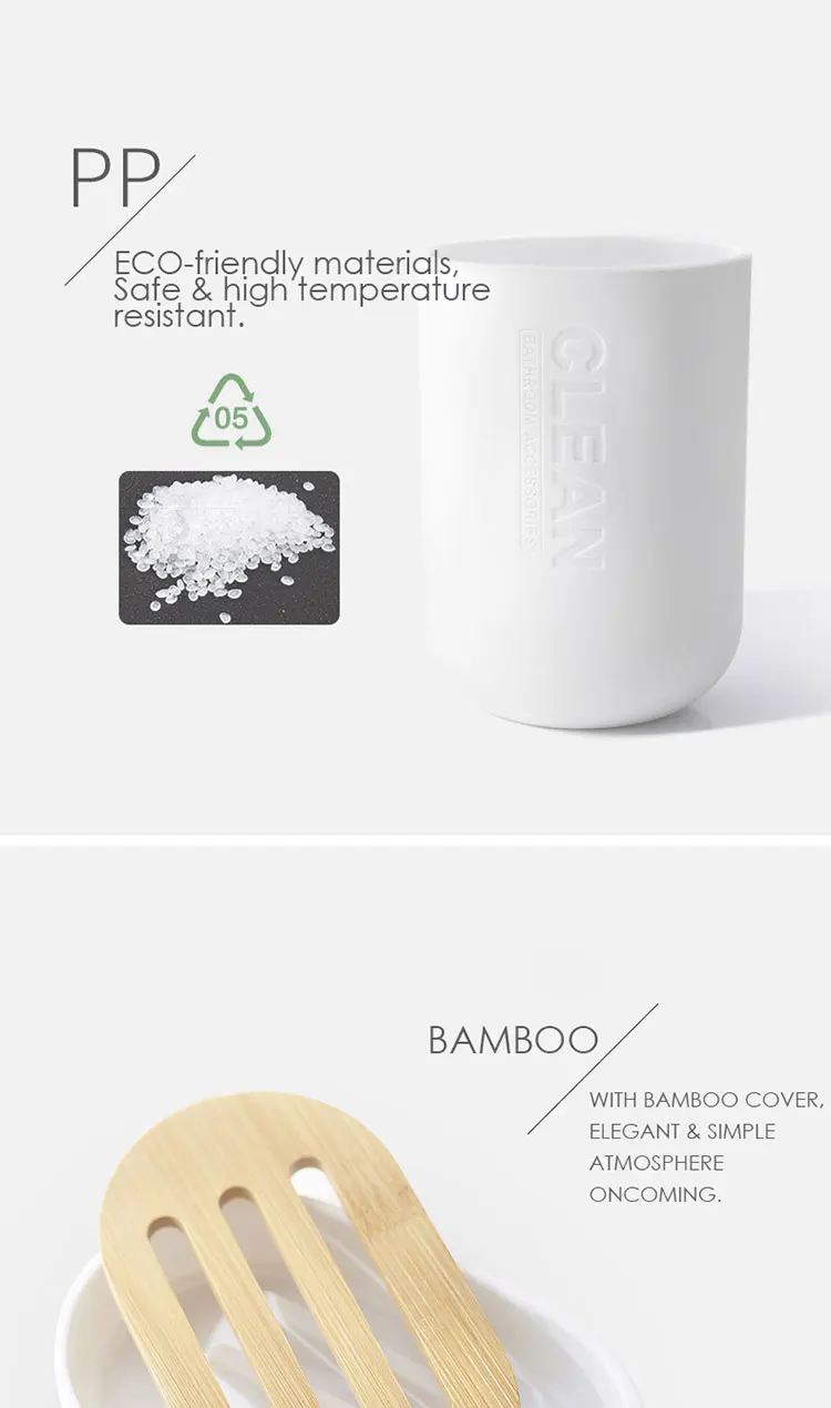 Набор из чашка держатель для зубной щетки дозаторов для мыла и бамбукового дерева
