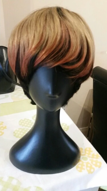 Прямые волосы боб Пикси медовый блонд бразильские волосы Омбре T1B/33/27 человеческие волосы короткие парики для черных женщин без кружева передний парик с челкой