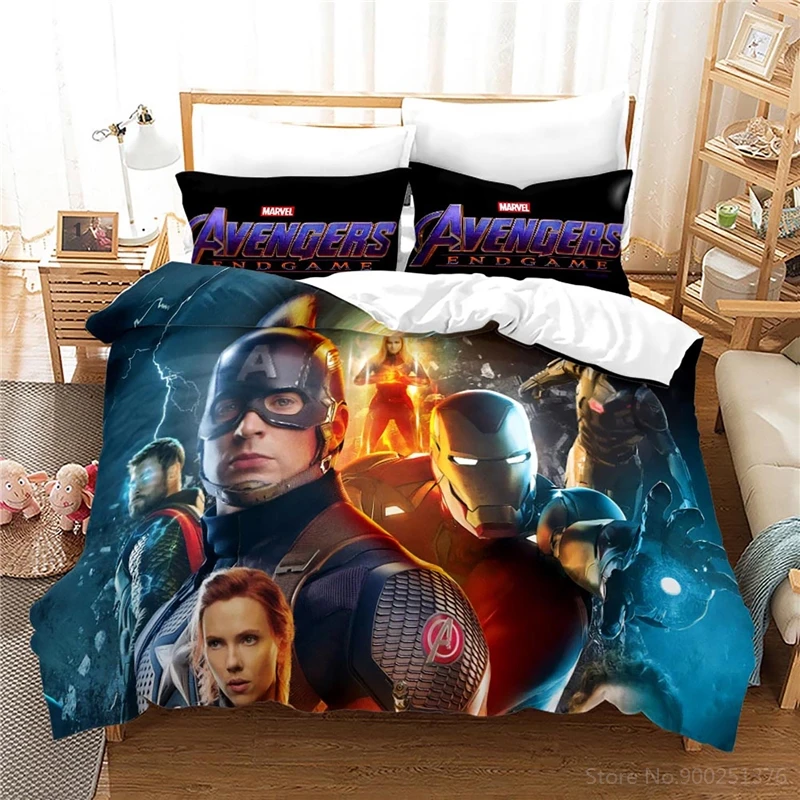 Комплект постельного белья с 3D-принтом из мультфильма Marvel, Мстители, Железный человек, Капитан Америка, Тор, Халк, пододеяльник, размер Twin Full Queen King