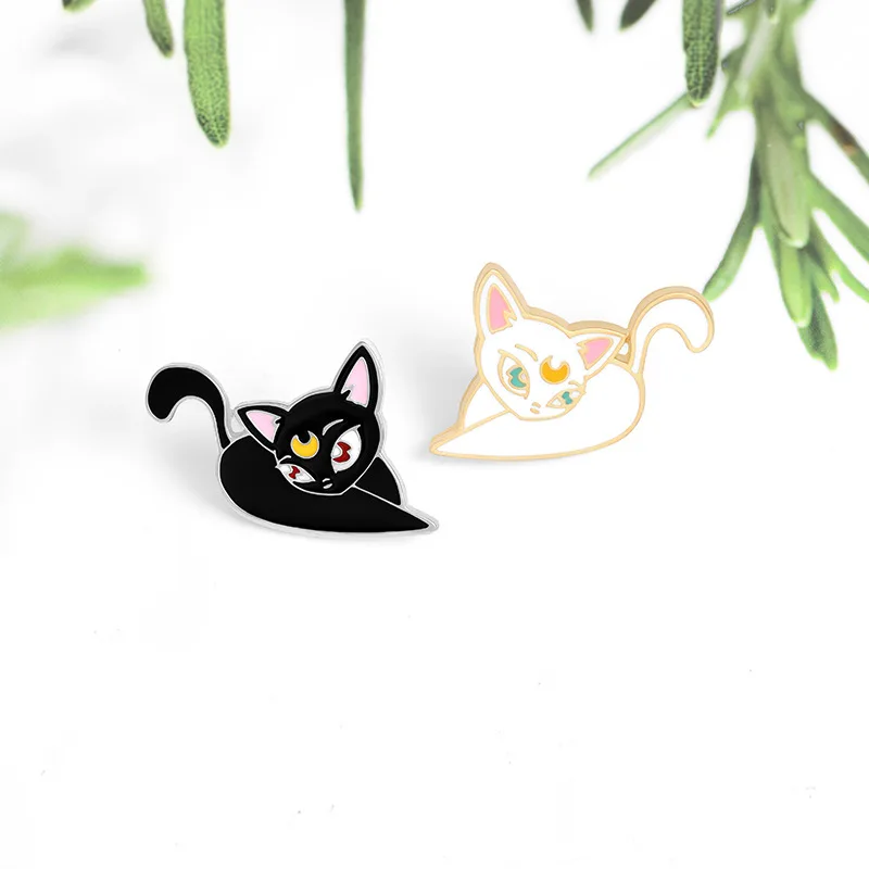 Эмалированные заколки для дня и ночи на заказ, луна, кошка, черная,...