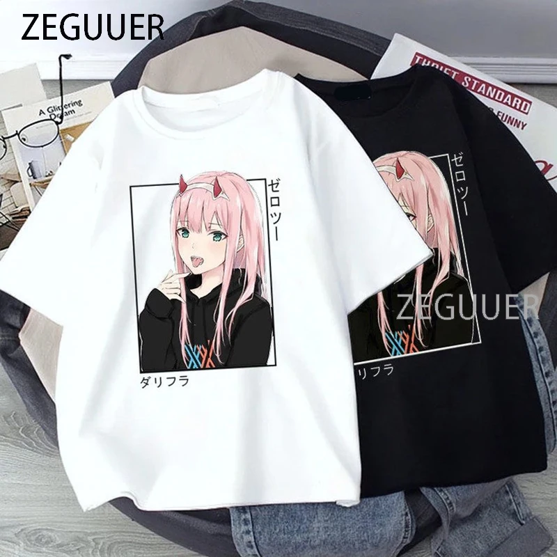 Футболка унисекс Zero Two Harajuku, футболка с японским аниме Харадзюку, уличная женская футболка с коротким рукавом
