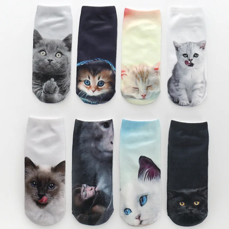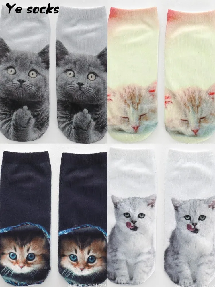 Новинка 2021, носки унисекс с 3d рисунком мультяшного кота, веселые креативные красочные разноцветные Носки с рисунком мультяшного кота, животного, счастливая фотоженщина
