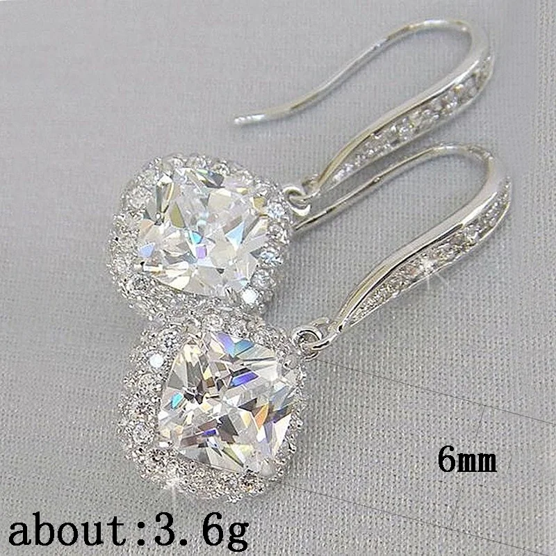 Модные висячие серьги с белым сапфиром, свадебное кольцо, обручальные ювелирные изделия, огранка принцессы, серьги с муассанитом и кристаллами, подарок для любимого человека