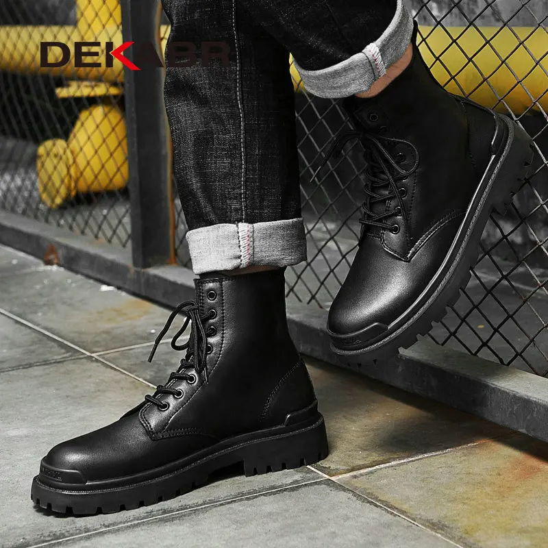 Мужские Ботильоны DEKABR, из натуральной кожи, с высоким берцем, для зимы, мотоциклетная обувь, размеры 38-48