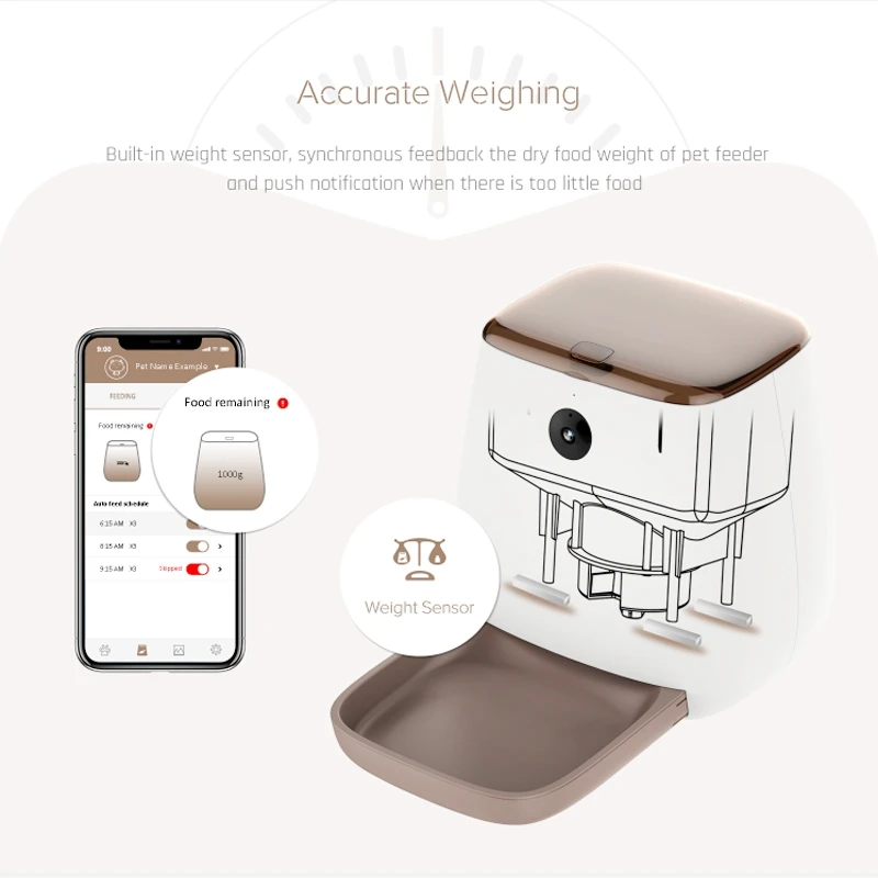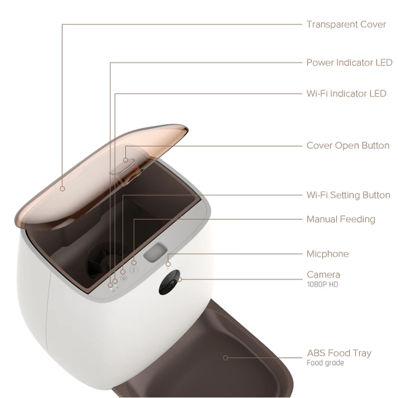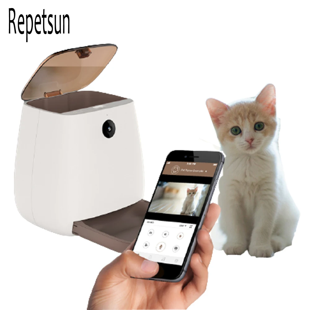 Автоматическая кормушка для домашних животных, умный диспенсер с голосовым рекордером и таймером, с управлением через приложение, Wi-Fi, для кошек и собак