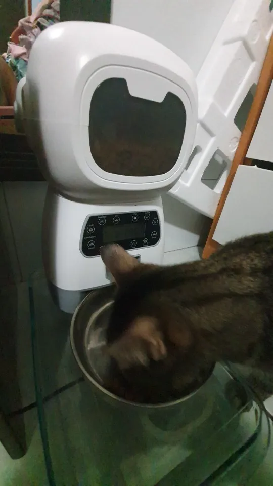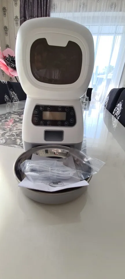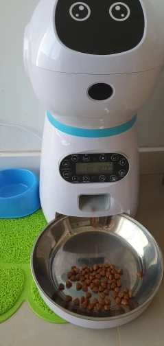 Он выполняет свою функцию и отличную цену! My Cat Is obsessed with It, gives rations of 5gr and manually is also possible. Очень прочный, моя кошка дала ему несколько ручек, не удавая его, она также попыталась вытащить еду из-за неудачного отверстия для дозатора. Единственное, что нужно сделать, это убедиться, что верхняя крышка закрывается хорошо, потому что они открывают ее и съедают ее прямо... Очень доволен покупкой!