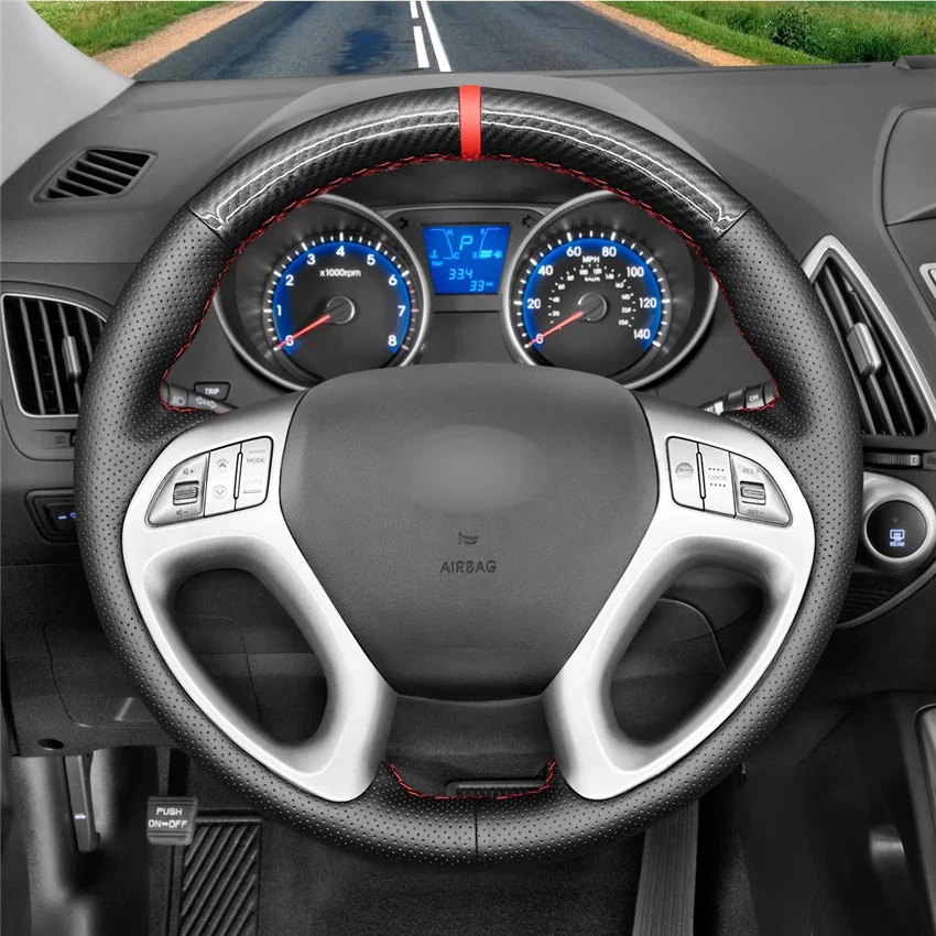 Искусственная кожа из черного углеродного волокна Чехол рулевого колеса автомобиля для Hyundai ix35 2010-2016 Tucson 2 2010 2011 2012 2013 2014 2015