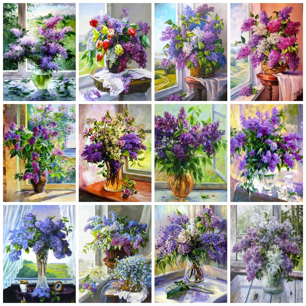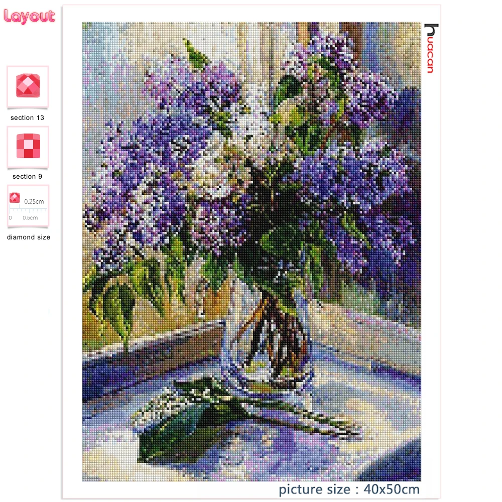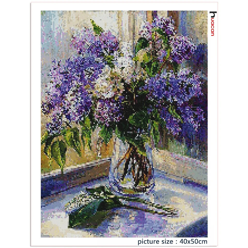 Алмазная картина Huacan сделай сам, домашний декор в виде сиреневого цветка, мозаика для вышивки стразами, ваза с цветочным рисунком
