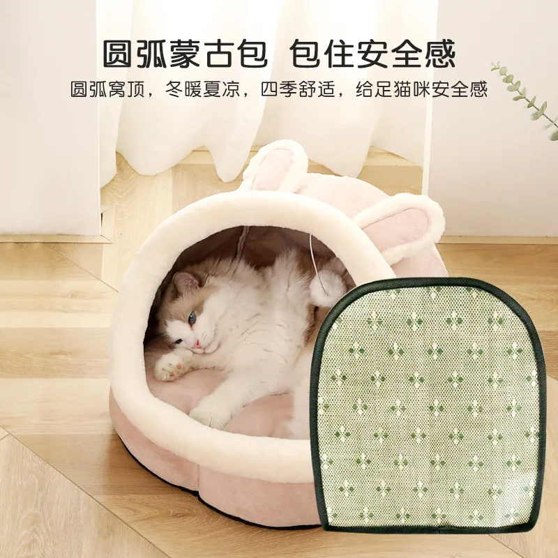 Летняя уютная кошачья будка, теплая кровать, мягкое гнездо, коврик,...