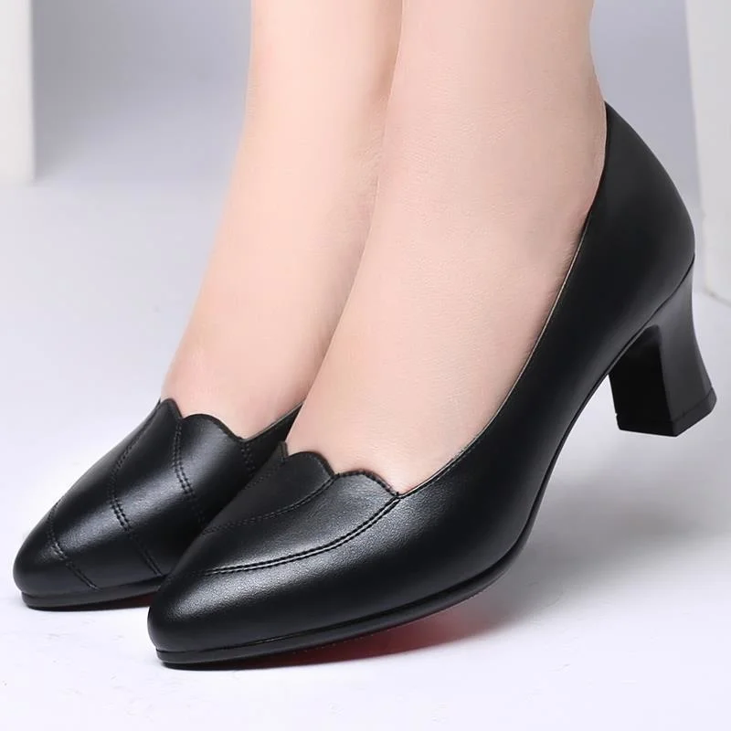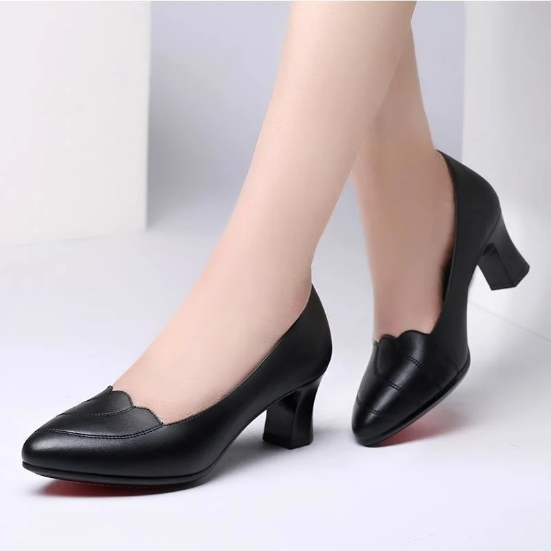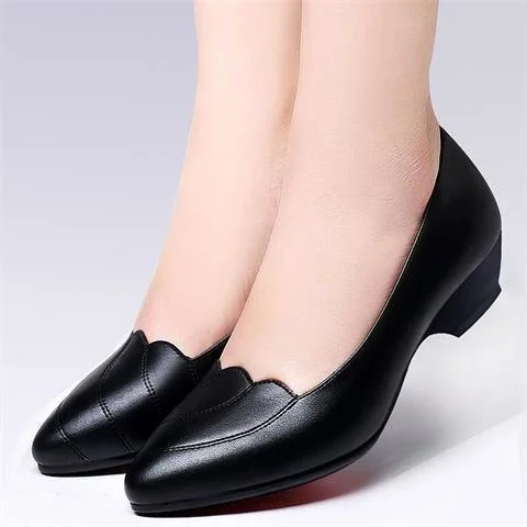 [Возвратная упаковка, стоимость доставки] Новая Осенняя рабочая обувь на высоком каблуке Женская кожаная обувь на низком каблуке официальные тонкие туфли на среднем каблуке удобная обувь для мам на мягкой подошве для работы