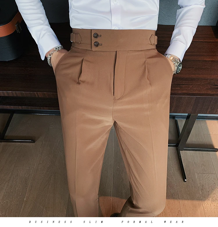 Брюки мужские деловые Повседневные в британском стиле, простые однотонные брюки, деловая одежда, облегающие прямые офисные штаны