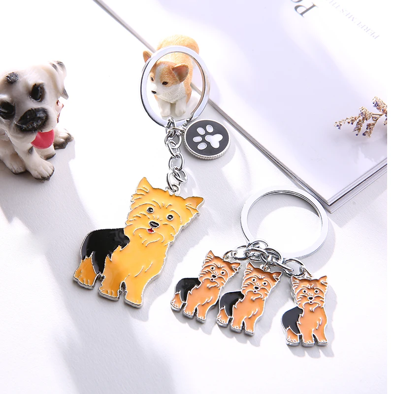 Брелок для ключей женский из цинкового сплава, модный металлический брелок с эмалью в виде собачьей лапы, йоркширского терьера, украшение для бара и автомобиля с животными