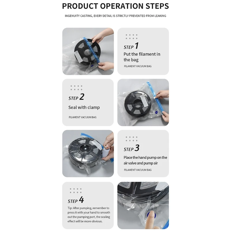 Особенности:100% новый и высокое качествоНабор для хранения 3D принтеров позволяет защитить нити от влаги, пыли, насекомых, плесени, запаха и т. Д. Он будет в лучшем состоянии для печати.Намного проще вытянуть воздух из вакуумных мешков с помощью ручного насоса, прост в эксплуатации.С сухой и влажной двойного назначения, пыли и влаги. Эффективно предотвращает окисление расходных материалов и влагостойкость в вакуумной среде. Изготовлен из высококачественных многослойных композитных материалов, пригодных для вторичной переработки и долговечных.SPU: Вакуумный пакет-отличный способ решить эту проблему, сохраняя нить в вакуумном хранилище, когда вы ее не используете. И может быть повторно использован много раз.Цепочка с зажимом «укуса в» может надежно зафиксировать карман одним зажимом.Посылка включает в себя:1 набор зажимов для насосаХарактеристики:Тип изделия: сумка для хранения нити/ручной насосРазмер: около 34X3 0 см/13.38x11.18 дюймовМатериал:ПластикПрименимая сцена: 3D-принтерПримечание:Из-за проблем с световыми эффектами и углами съемки, в продукте будут определенные допуски, пожалуйста, поймите.Возможны отклонения в 0-1 см из-за измерения вручную.