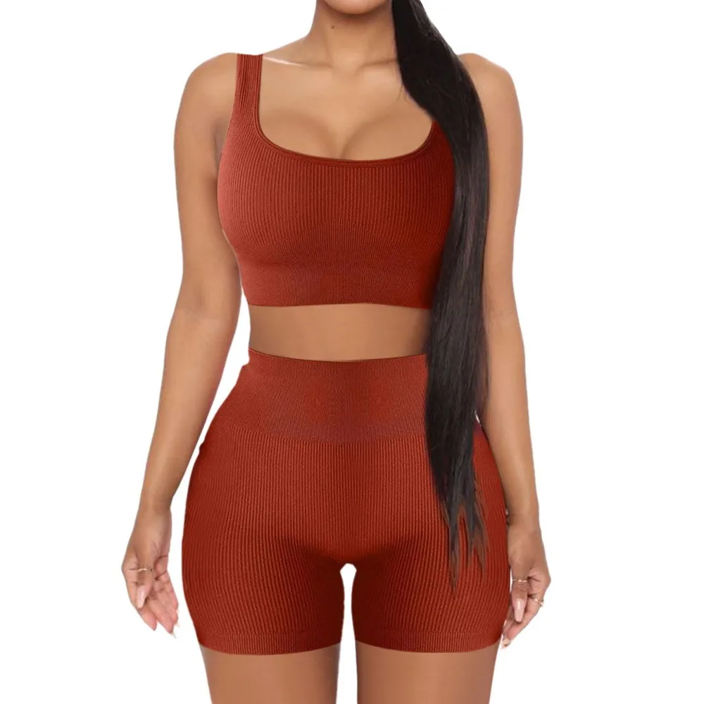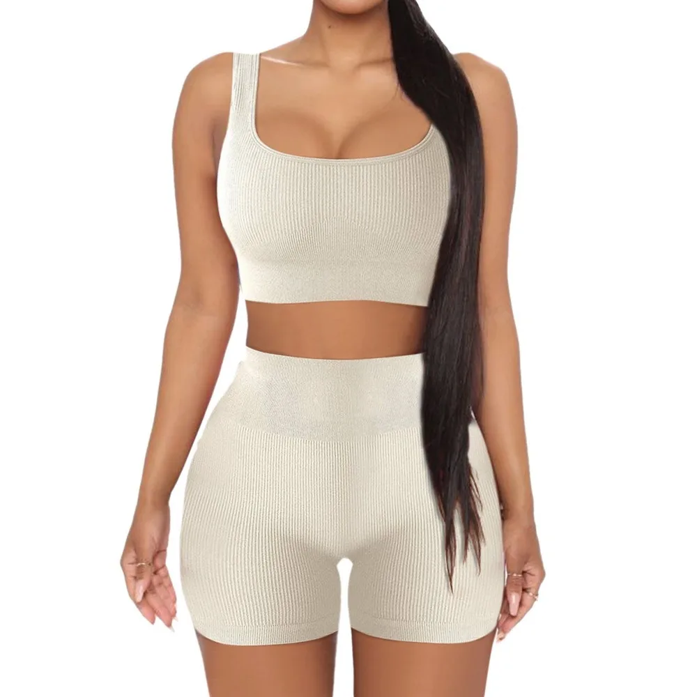 Женский бесшовный комплект для спортзала, короткий топ с высокой талией для фитнеса, спортивная одежда, Леггинсы для йоги, комплект из двух предметов, женская летняя одежда