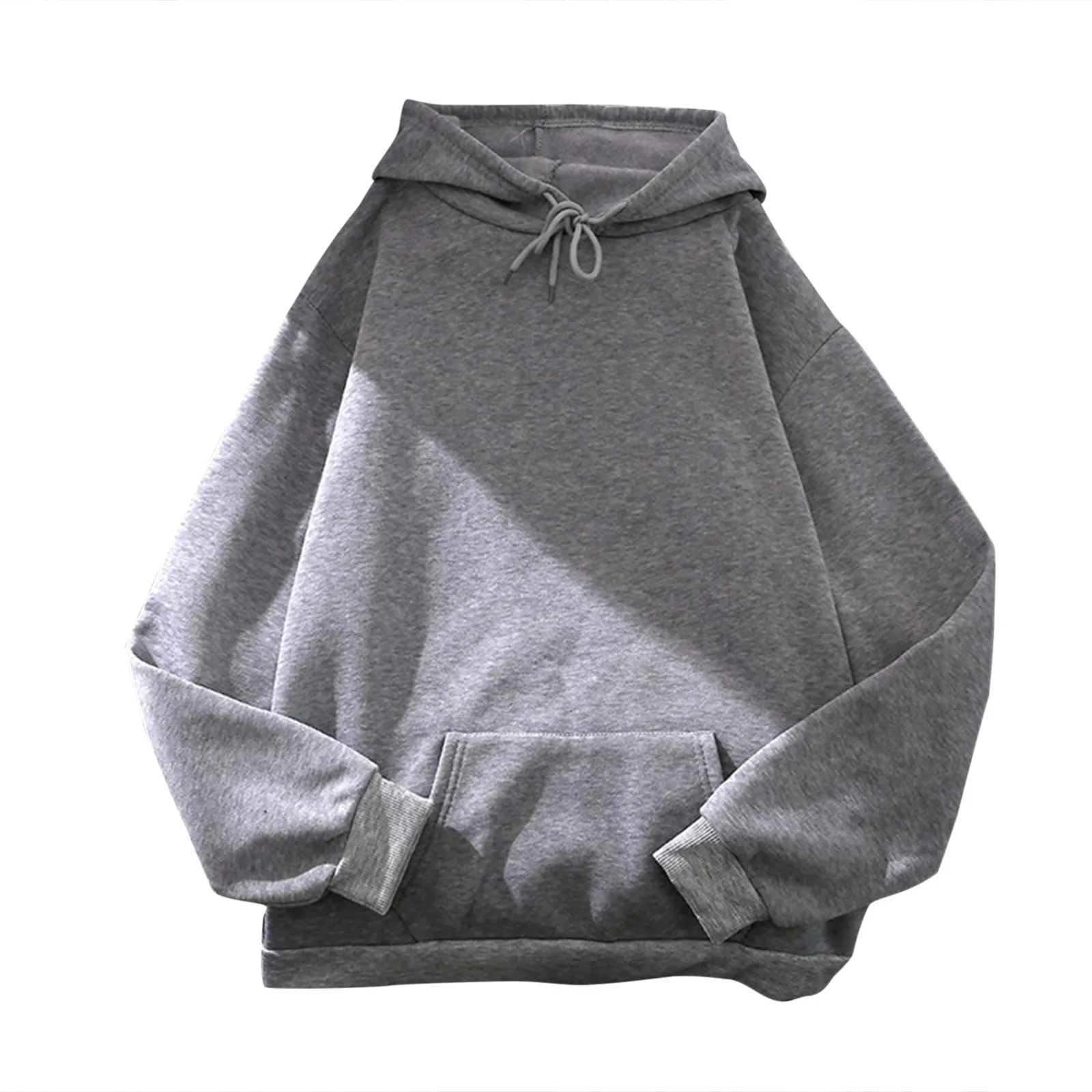 Женская толстовка с капюшоном, повседневный однотонный свитшот свободного покроя с длинным рукавом и карманами, серого цвета, 2021