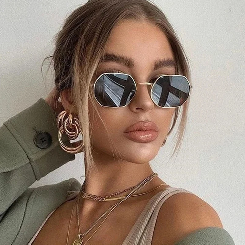 Очки солнцезащитные женские квадратные в стиле ретро, милые пикантные брендовые дизайнерские солнечные очки с шестигранной маленькой оправой и затемненными линзами
