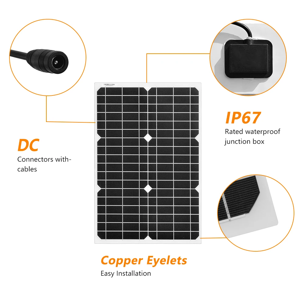 Набор солнечных панелей, 18 в, 30 Вт, постоянный ток, гибкие моноэлементы, с зажимом типа крокодил, кабель постоянного тока в USB, ШИМ-контроллер для зарядного устройства 12 В