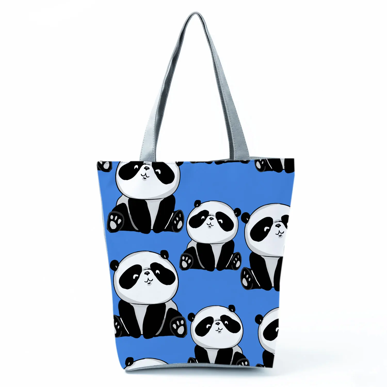 Вместительные эко-сумки с рисунком панды, многоразовая женская сумка для покупок, милая мультяшная графическая дорожная пляжная сумка, синяя сумка-тоут с индивидуальным рисунком