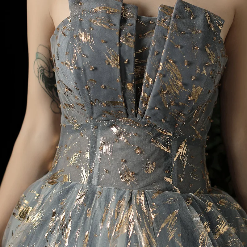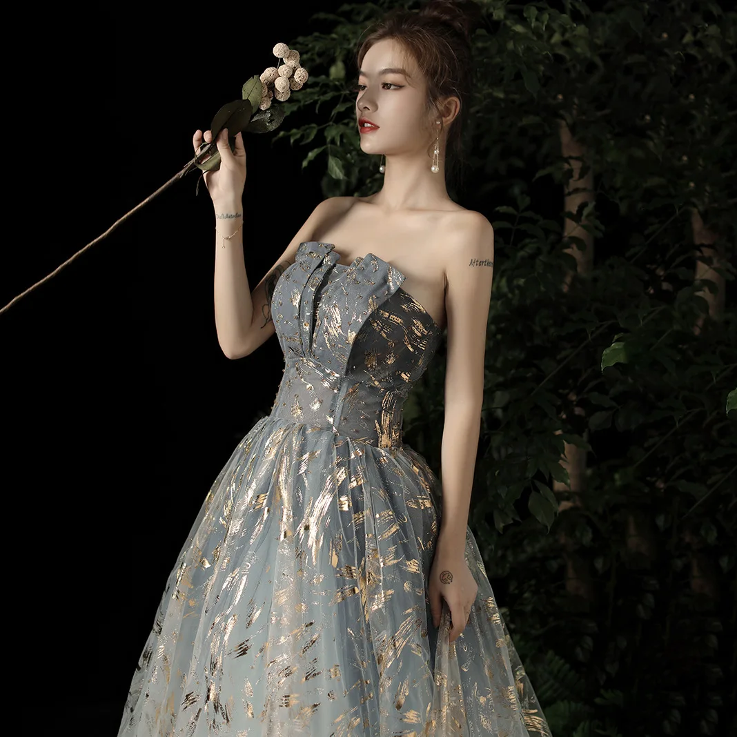 Новинка 2020, банкетное модное элегантное вечернее платье без бретелек, роскошное платье-трапеция для выпускного вечера, пикантные вечерние платья с открытой спиной и золотой аппликацией