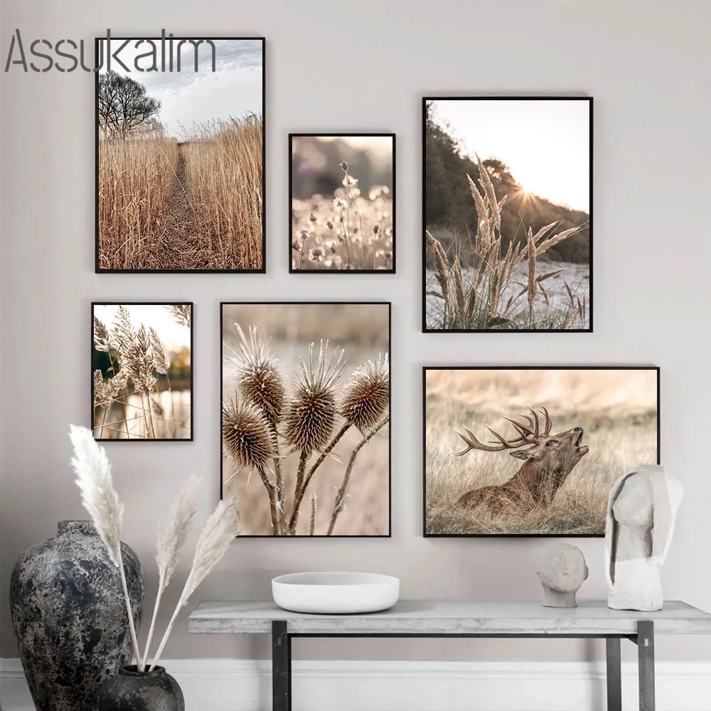 Осенний пейзаж настенный постер пшеничное поле холст картина уличны...