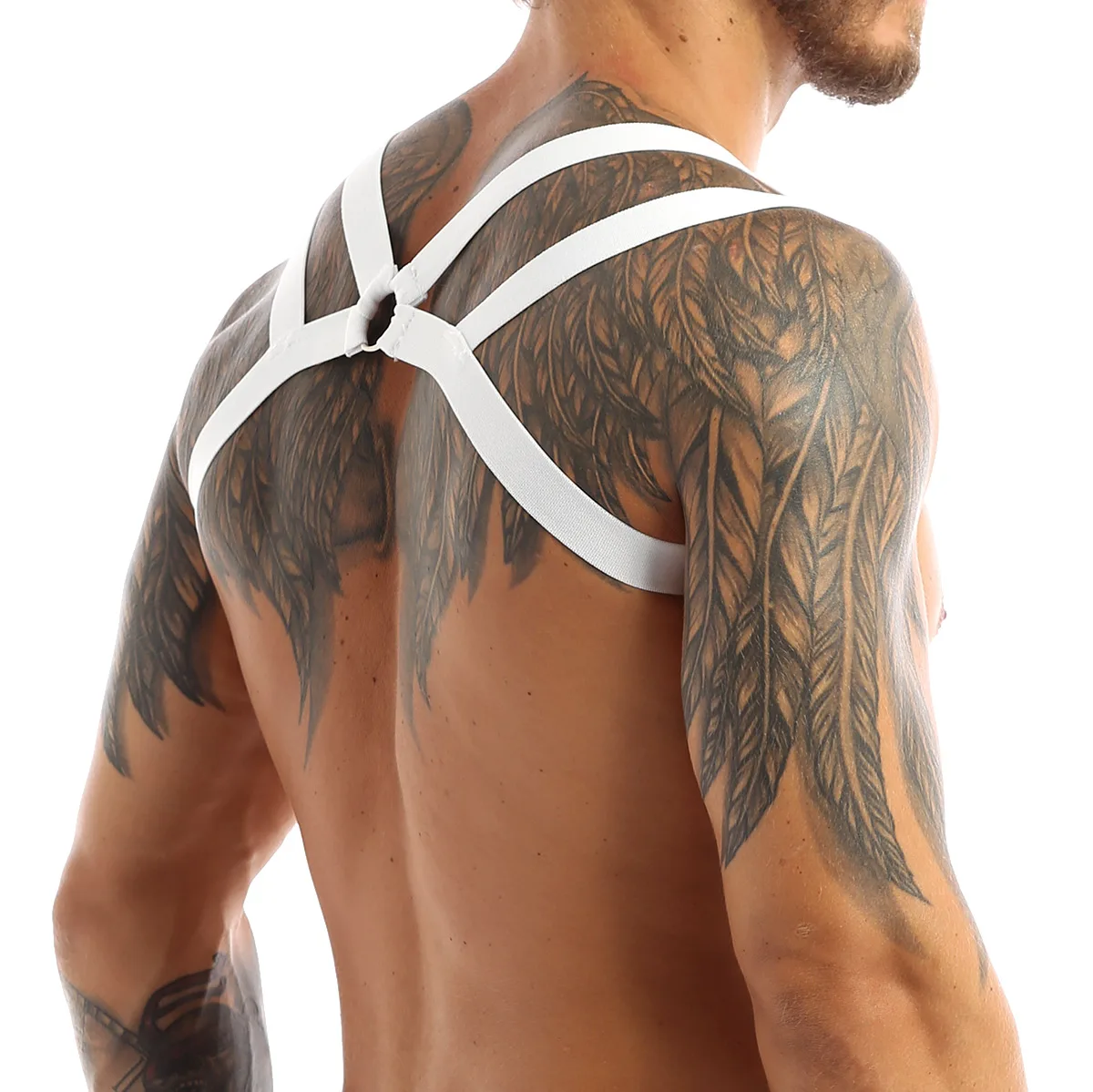 Мужской Двойной плечевой ремень, эластичный пояс для мышц груди с металлическими уплотнительными кольцами, модный аксессуар для клувечерние ремень для костюма