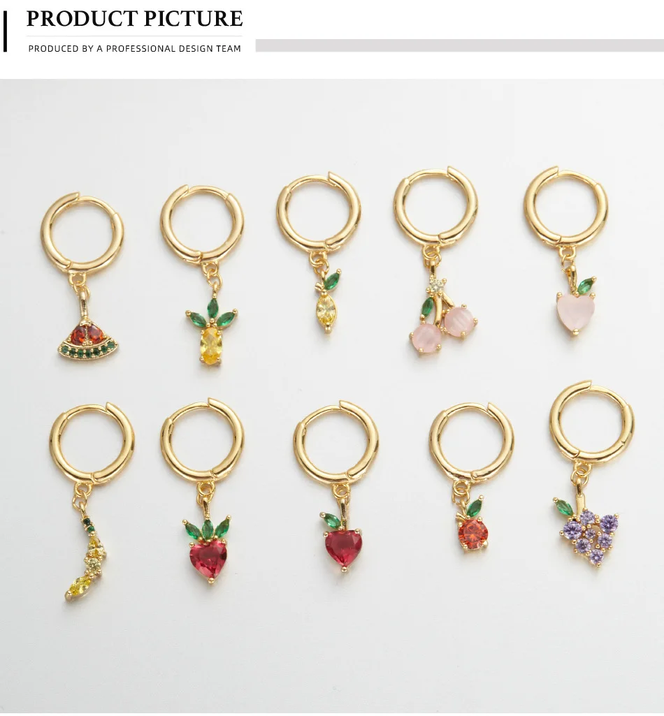 Серьги-кольца SIPENGJEL, блестящие, цветные, циркониевые, фруктовые...