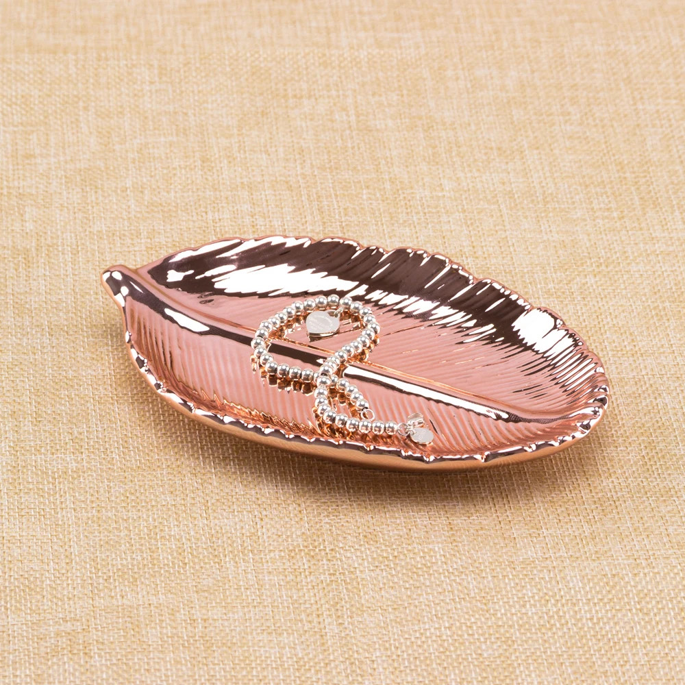 Gloden керамический поднос для хранения ювелирных изделий с искусственными листьями дерева, десертов, серебряный поднос для хранения, розовое золото, керамические ювелирные изделия, эмалированная тарелка