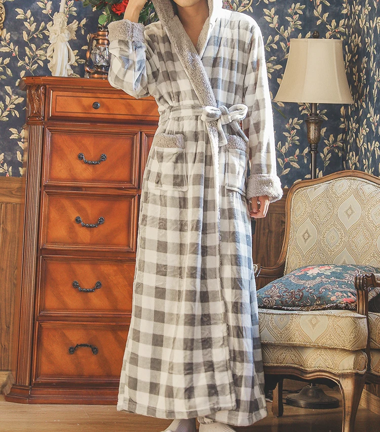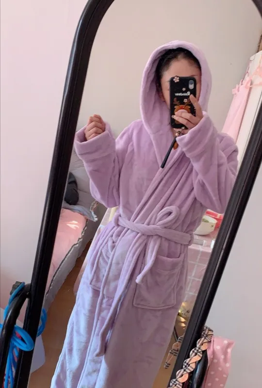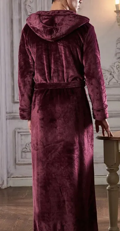 Мужской зимний очень длинный плотный теплый фланелевый Халат с капюшоном, банный халат длиной до щиколотки из кораллового флиса, Женский мягкий Халат