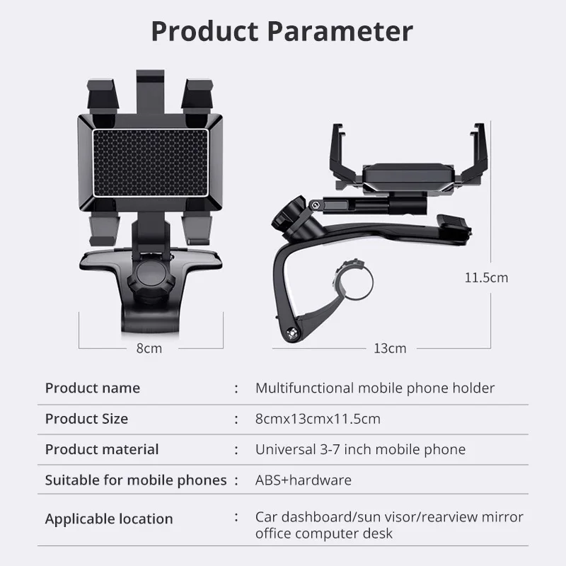 Многофункциональный автомобильный держатель, вращающийся на 360 градусов кронштейн GPS для приборной панели автомобиля, солнцезащитный козырек, компьютера заднего вида