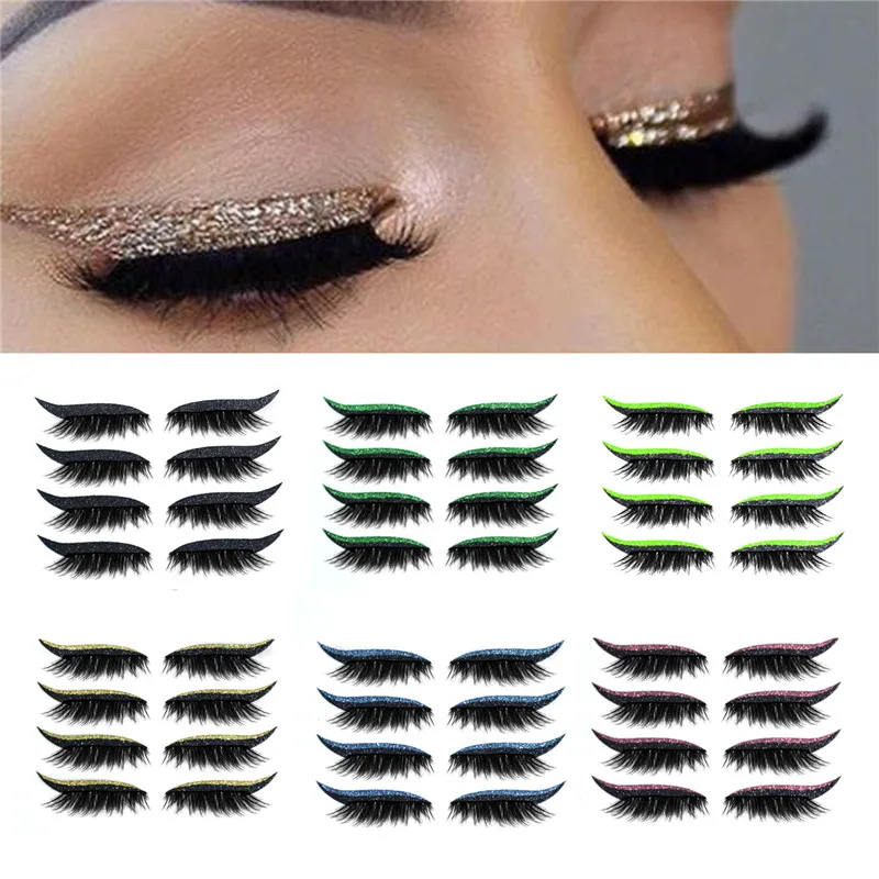 Многоразовые макияжные подводки для глаз и ресницы, наклейки с блестками, искусственные ресницы, стикер для макияжа глаз, модная наклейка для лица