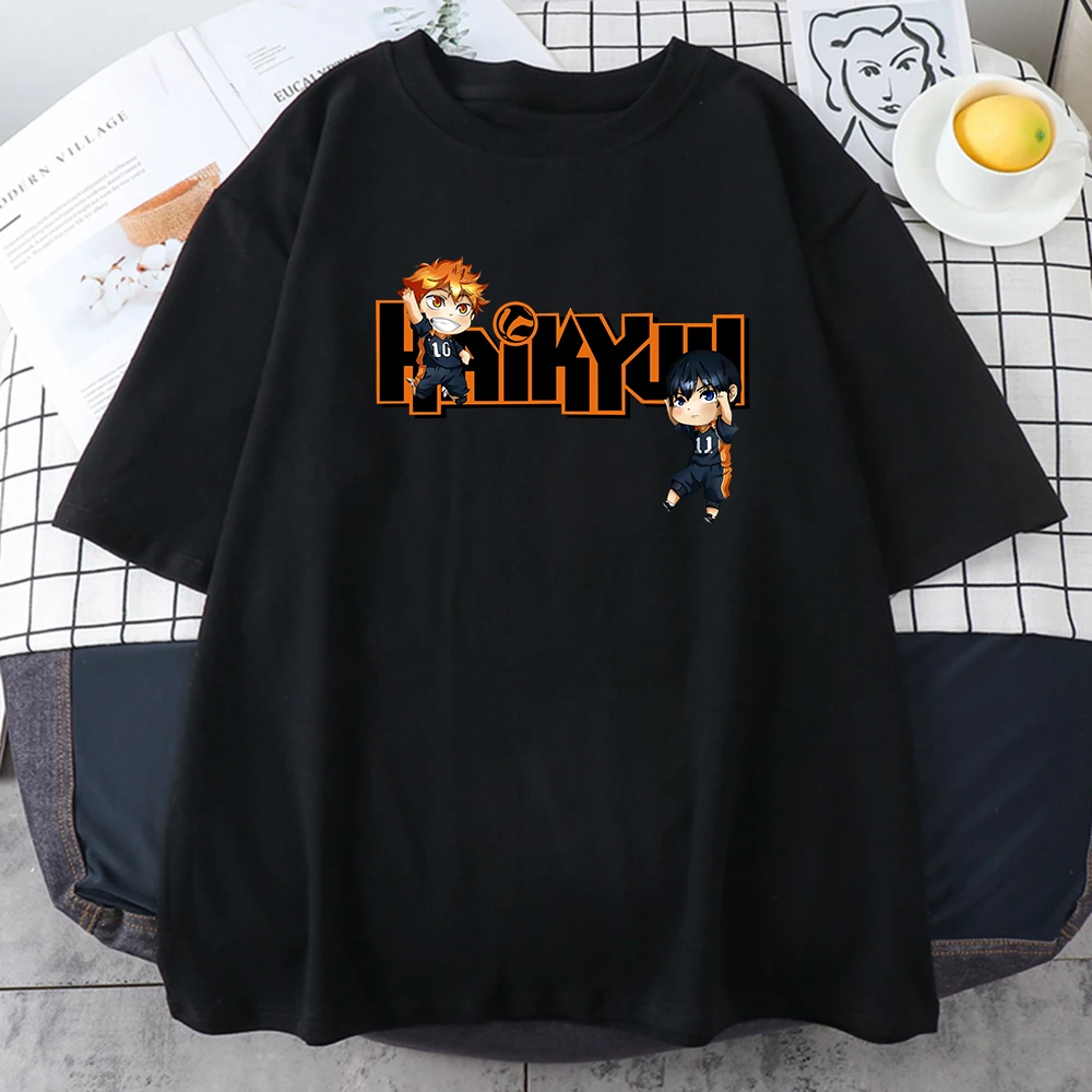 Футболка Haikyuu с японским аниме принтом, Женская свободная футболка оверсайз с круглым вырезом в стиле хип-хоп, женская новая модная футболка в стиле хип-хоп