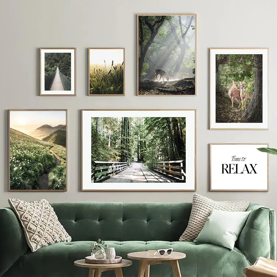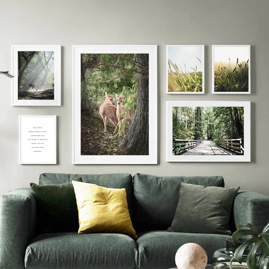 Картина на холсте с изображением лесной тропы, оленя, суккулентов, ...