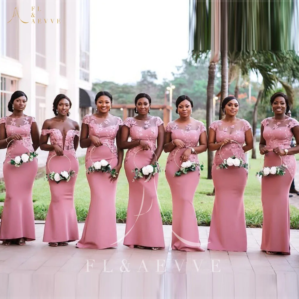 Винтажное розовое атласное платье подружки невесты с коротким рукавом и аппликацией, свадебные вечерние платья, иллюзия, женское платье для особых случаев размера плюс