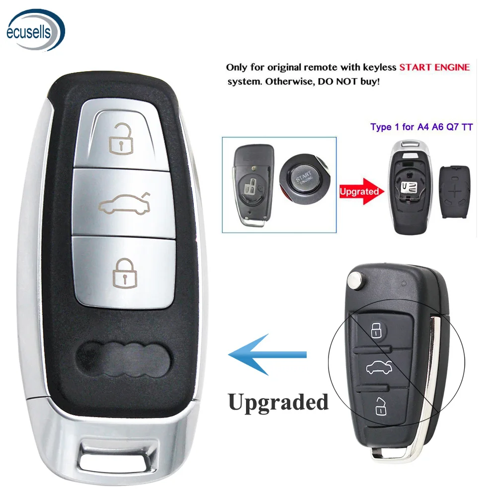 Обновленный чехол для ключа дистанционного управления с 3 кнопками для Audi A4, A6, Q7, TT, для системы запуска двигателя