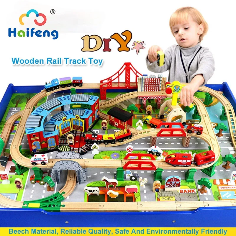 Деревянный поезд трек Набор Железнодорожный трек деревянные дорожны...
