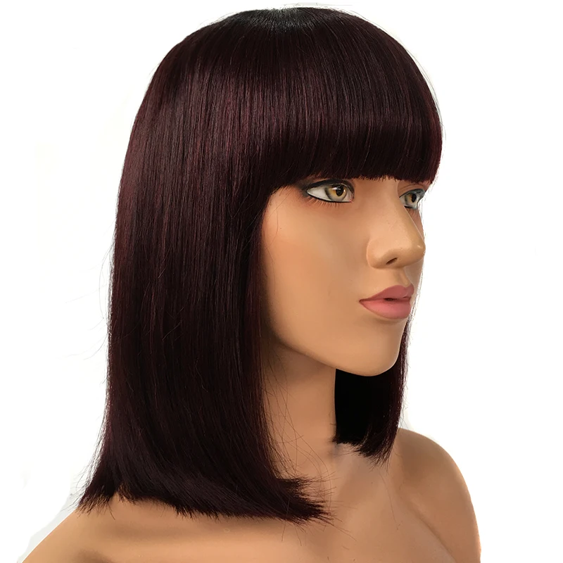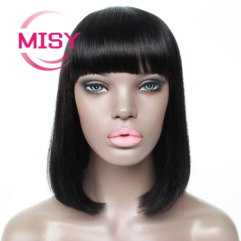 Парик прямой Боб, дешевые парики из человеческих волос с челкой для черных женщин, парики из человеческих бразильских человеческих волос с эффектом омбре