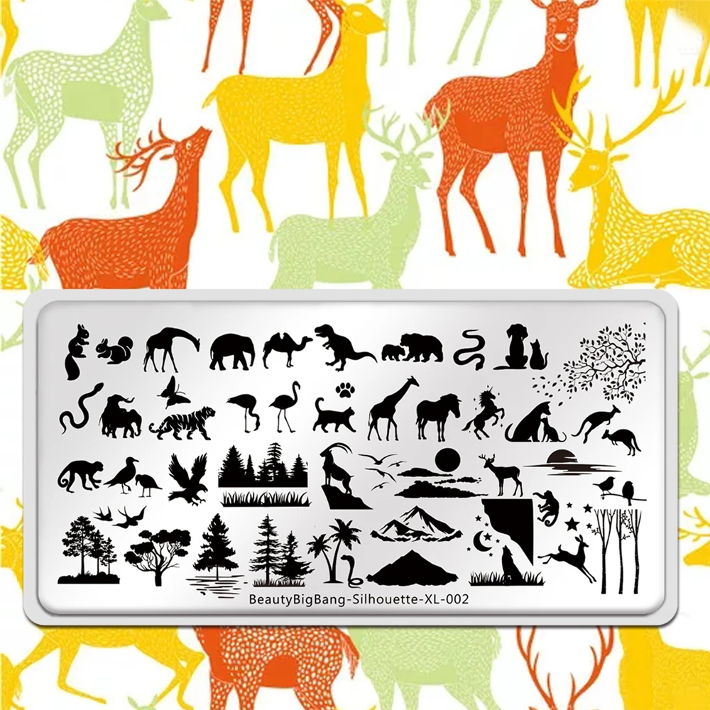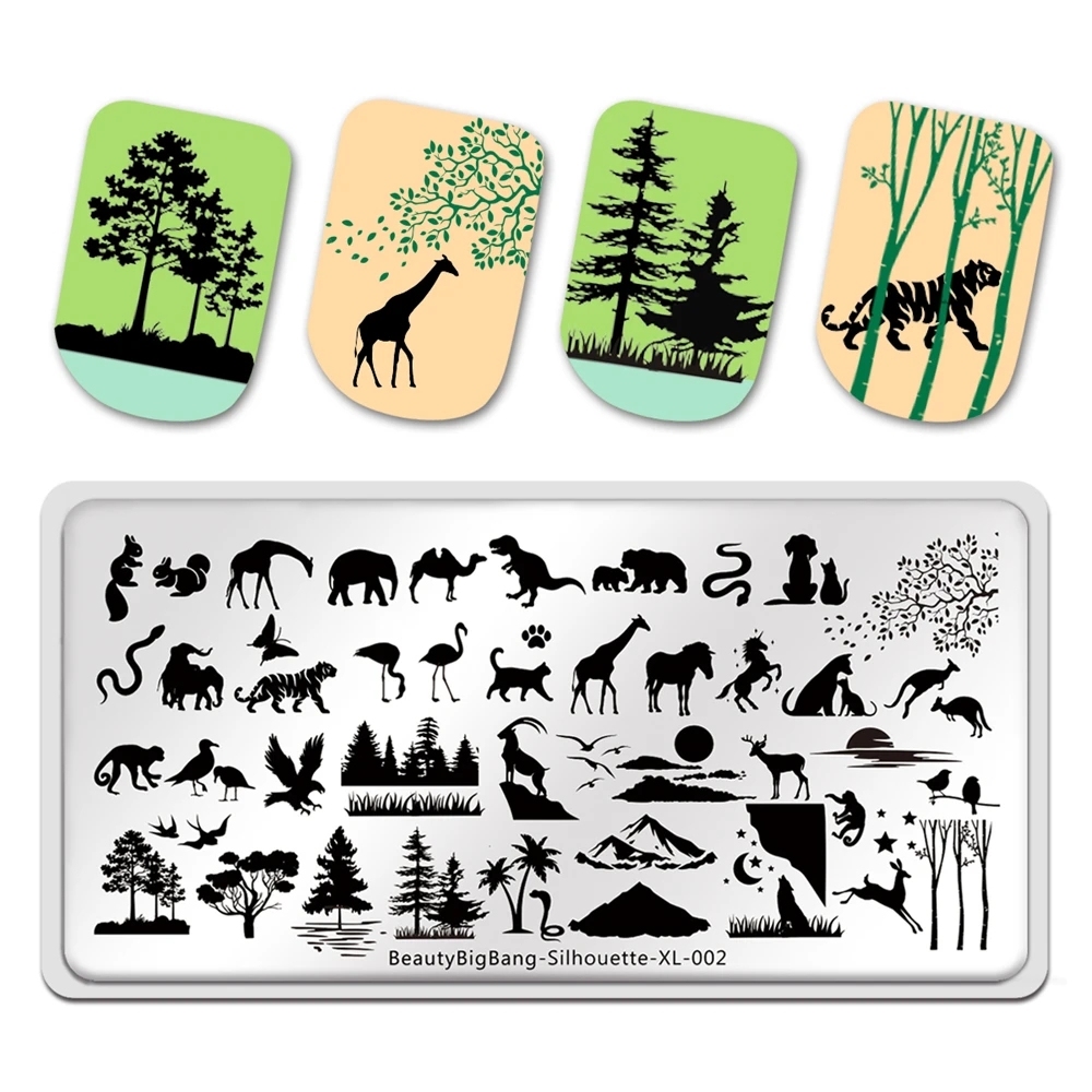 Трафарет Beautybigbang 6*12 см, штамп для ногтевого дизайна, рисунок силуэтов, искусственных животных, деревьев, змеи, динозавров, пластины для стемпинга ногтей