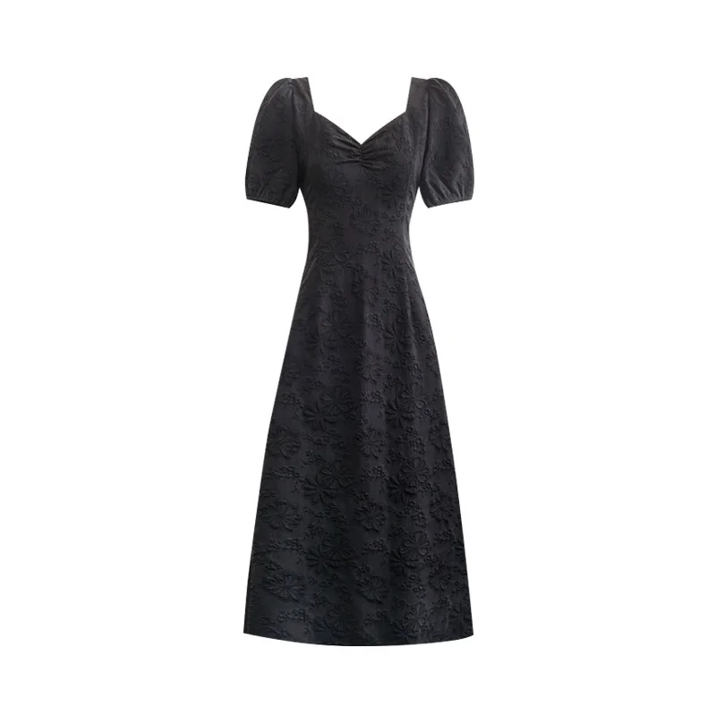 Женское вечернее платье Френч, элегантное жаккардовое платье миди с открытой спиной, винтажное черное платье принцессы для вечеринки, лето 2021