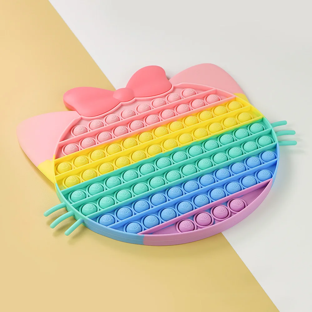 Характеристики продукта:Продукт изготовлен из высококачественного пищевого силикона и получил соответствующие сертификаты проверки качества. Нетоксичный и безвкусный, и может быть очищен кипятком. Различные яркие цвета легко получить любимый для детей.При нажатии на пузырь будет слабый звук. После окончания игры вы можете перевернуть игрушку, чтобы начать следующий раунд игры.Его можно использовать для детей в возрасте до 3 лет, чтобы использовать способность ребенка захватывать предметы. Когда дети играют, они могут осуществлять свое логическое мышление и навыки расчета.