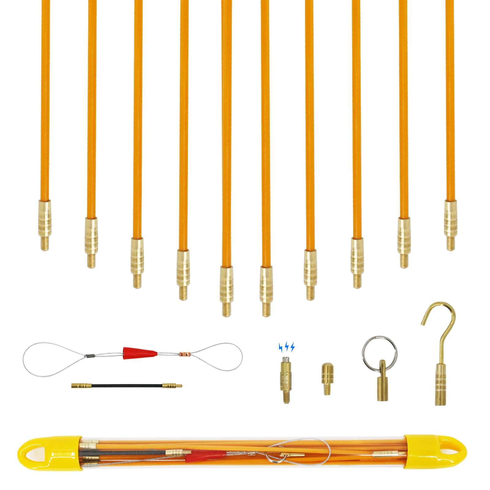 Эти непроводящие стержни из стекловолокна можно прикручивать вместе, чтобы образовывать более длинные длины для пробежки проволоки через стены, Чердаки, ползающие пространства, подполы и подвесные потолки.