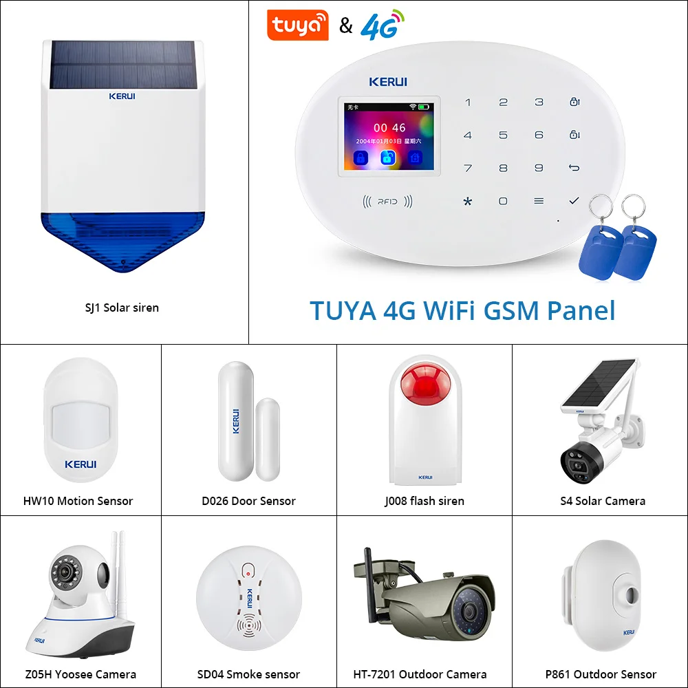 Беспроводная домашняя сигнализация kerui Tuya 4G W20, Wi-Fi GSM, SMS, охранная система для дома, охранная сигнализация с камерой, Солнечная Сирена