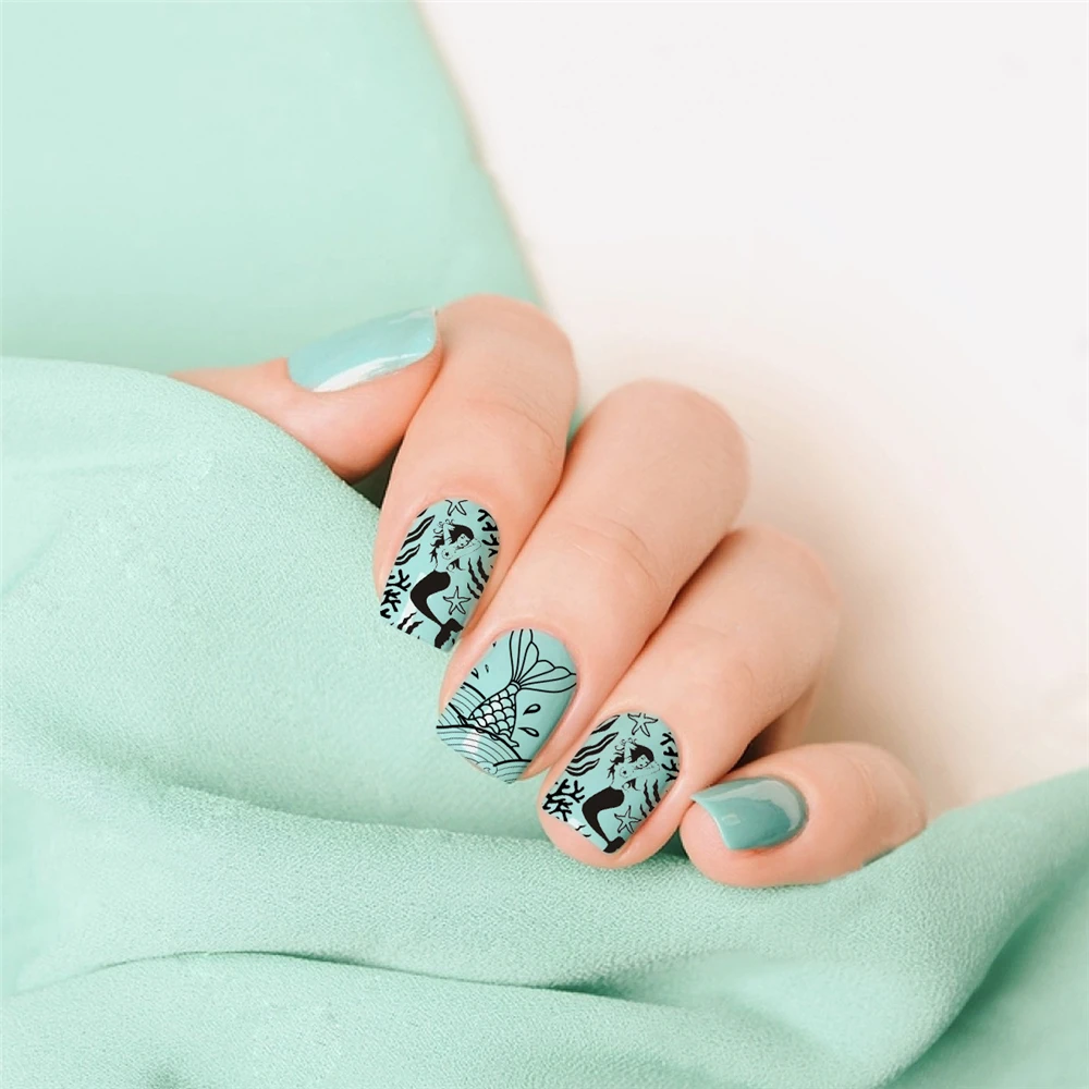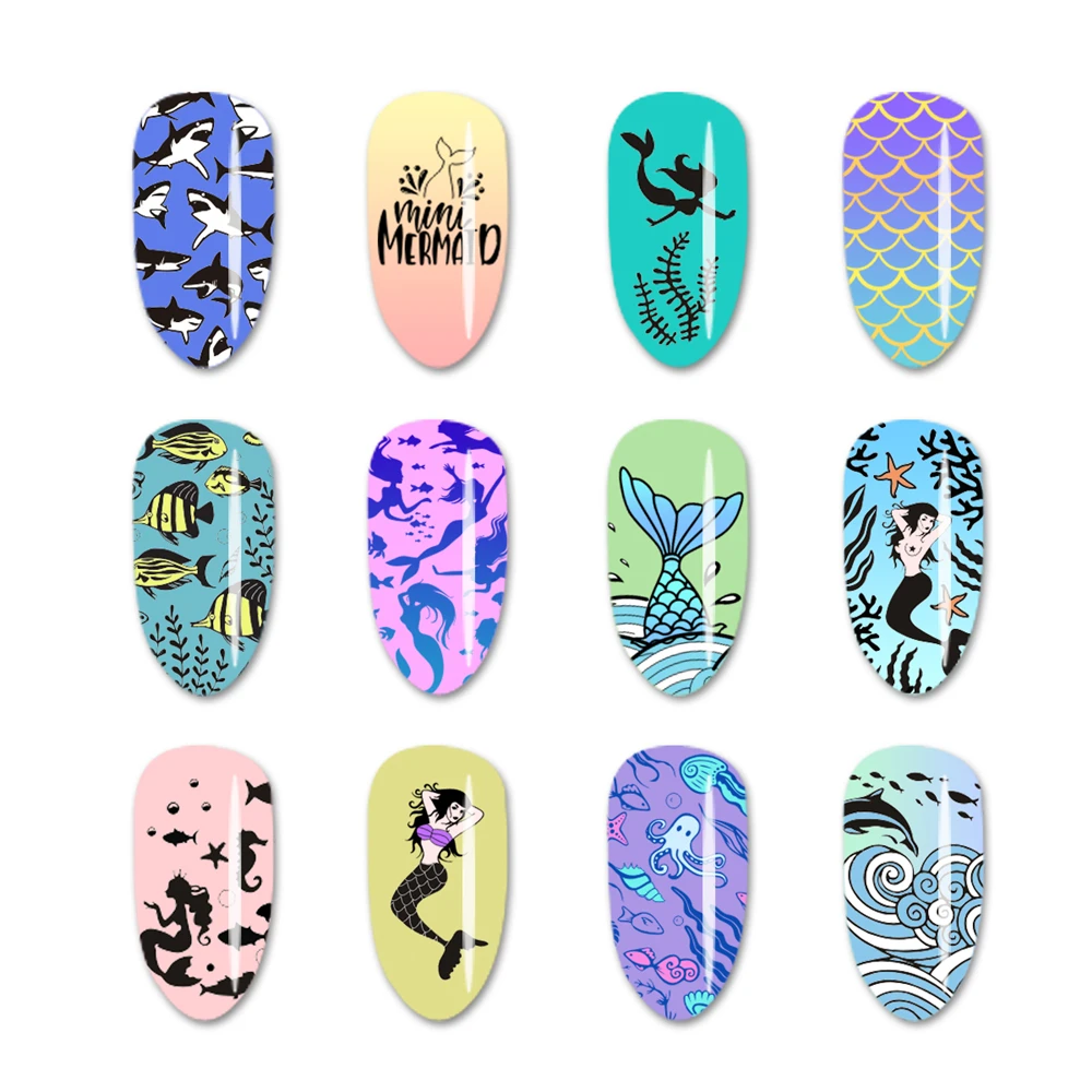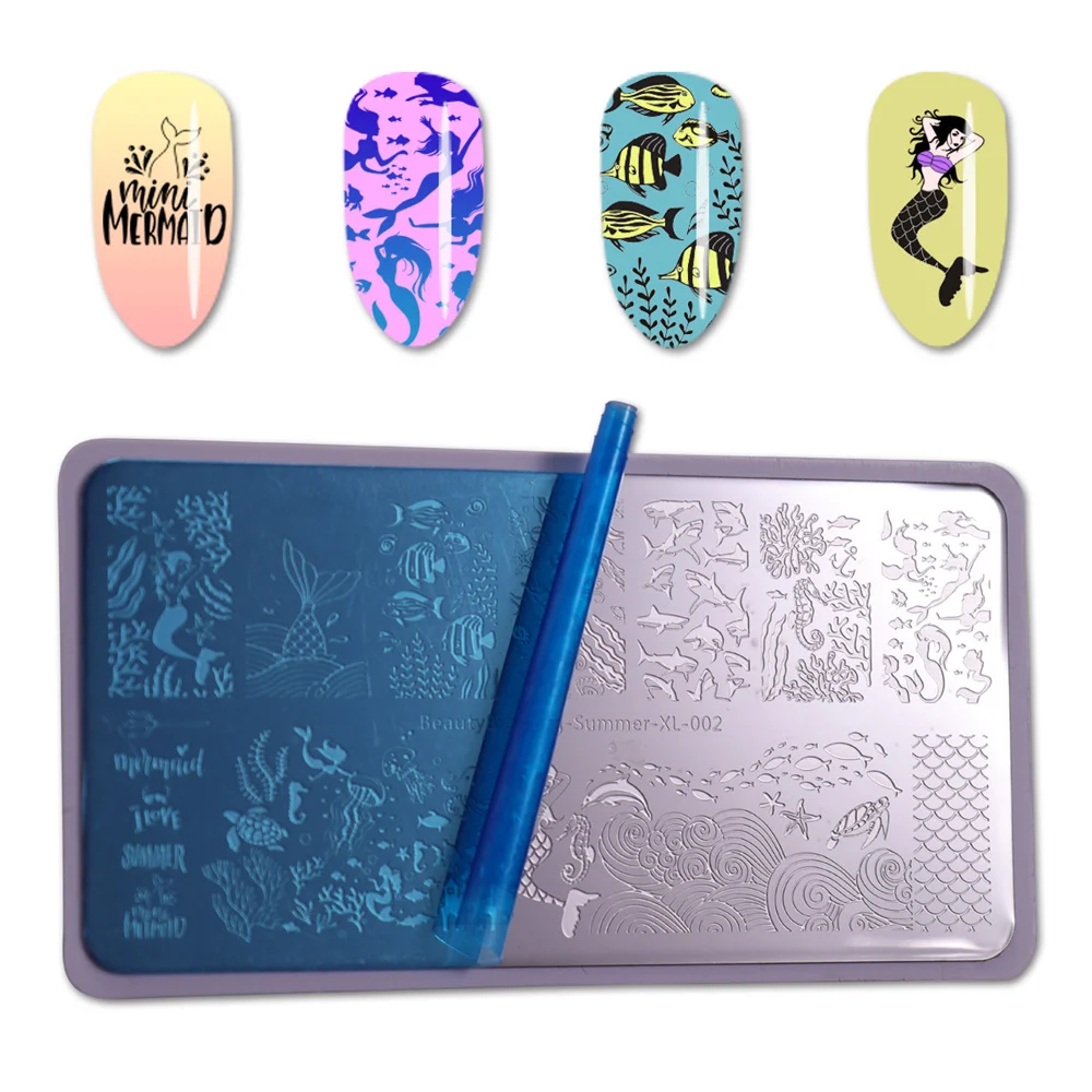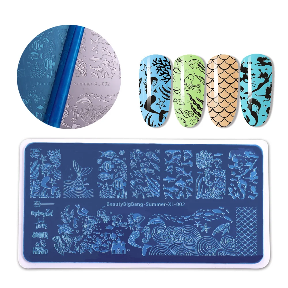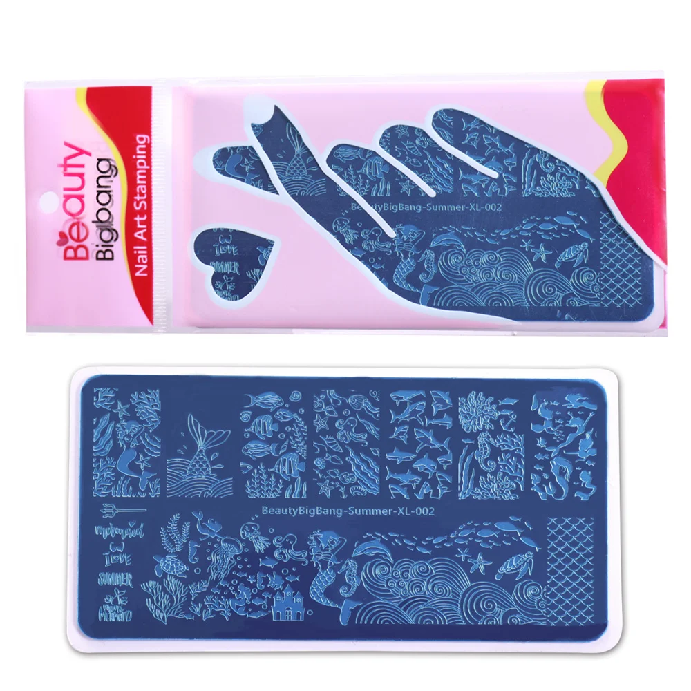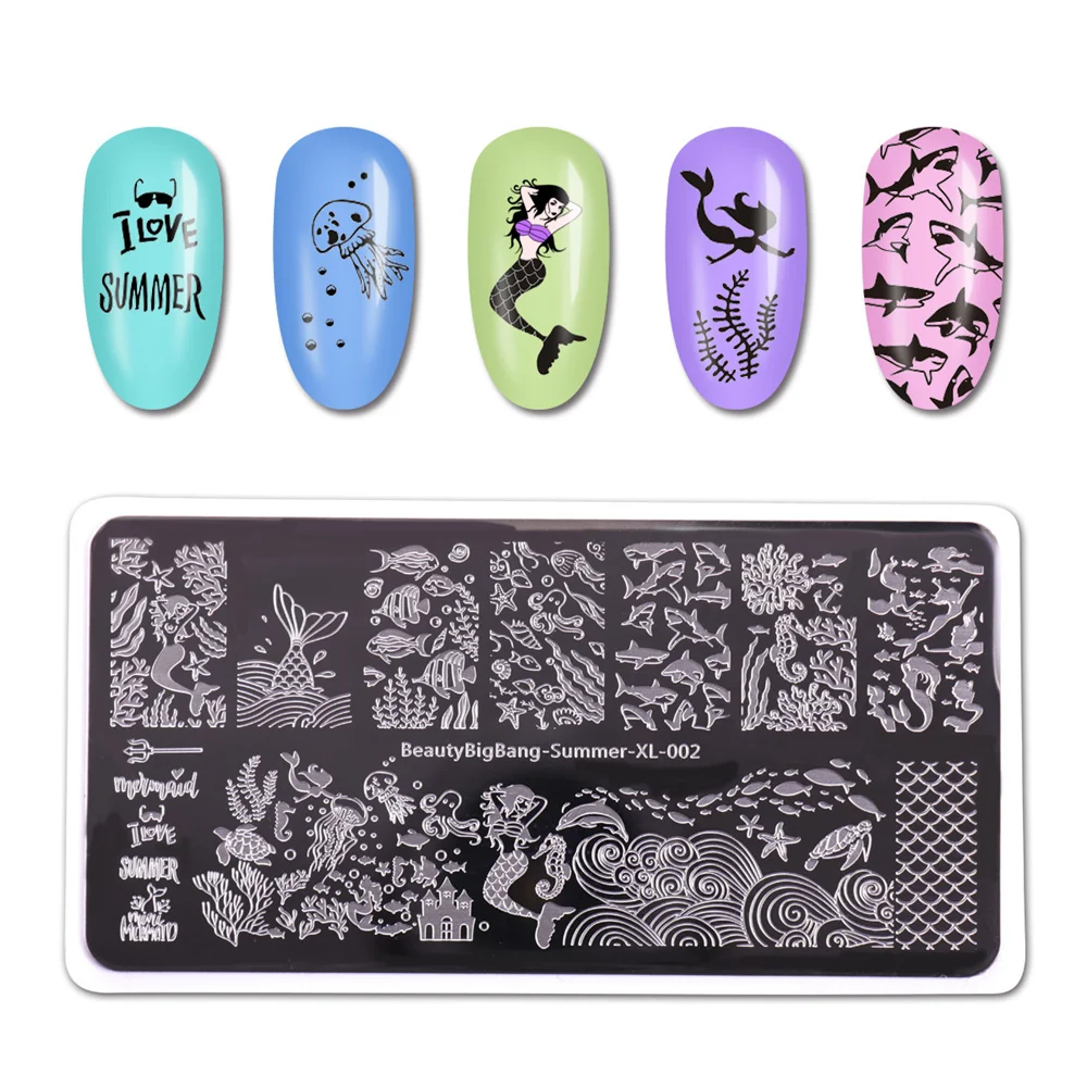 Трафарет Beautybigbang из нержавеющей стали для дизайна ногтей, 6 х12 см, летняя фотография Русалочки, волны, акулы, моря, пластины для стемпинга ногтей